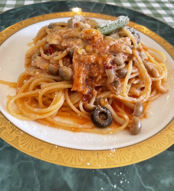 サラダ、バケット、メインパスタ、ジェラートのランチセット!!!パスタがめちゃめちゃ美味しい!!!丁寧に仕立てられ...