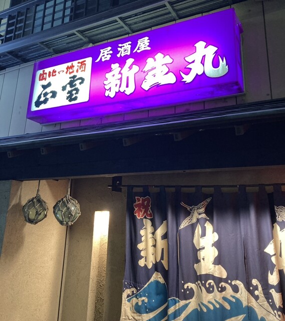 お店の玄関前が魚庄の文字でライトアップ✨感動