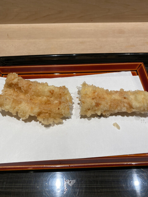 食べると食感はほぼ海老のみ。衣の感じがすごい少ないのくどさは全くない。近藤さんが言う天ぷらは蒸し料理を体感。