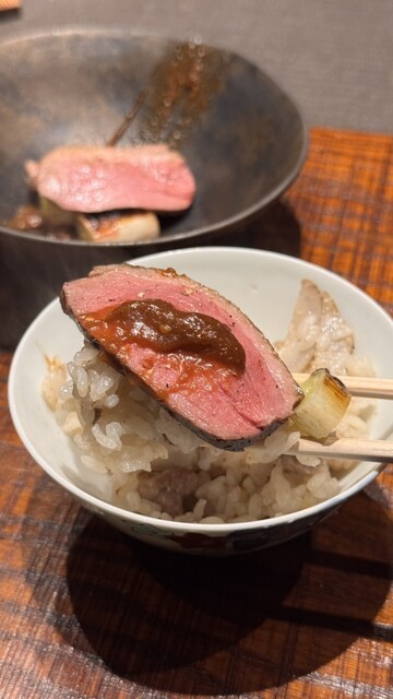 鴨の炭火焼きをご飯と一緒に食べる締めも最高で、最後まで満足。