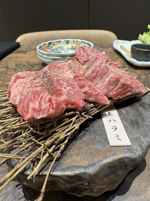 サラダ、キムチ、馬レバーとハツ刺し、炙り手巻きユッケ、焼きしゃぶタン、焼きすき、ハラミのローストビーフ、茶碗蒸しが焼肉の前に出てきて最高でした!