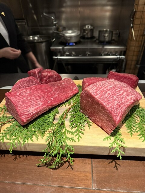 メインのステーキは2種類のお肉を味比べで、火入れの精度や肉質の見極めは相変わらず抜群、味比べで2種類のお肉の個性を引き出してくるあたり、実力の底深さを感じます。