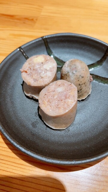 ・お通し ソーセージ(ハーブ・チーズ・プレーン)ジューシーで3種とも美味しい!