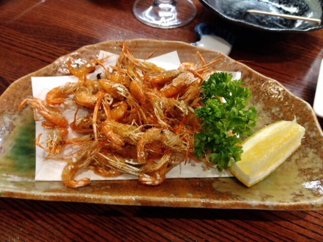 その後、小海老の唐揚げ、オオカミウオ唐揚げ。