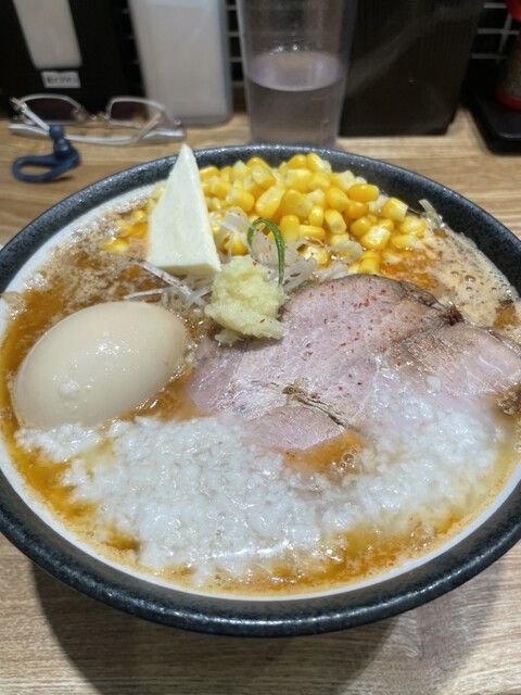 連れの部下は初なので、勝手にいつもの味噌ラーメンにバターコーンと小ライスを選択!