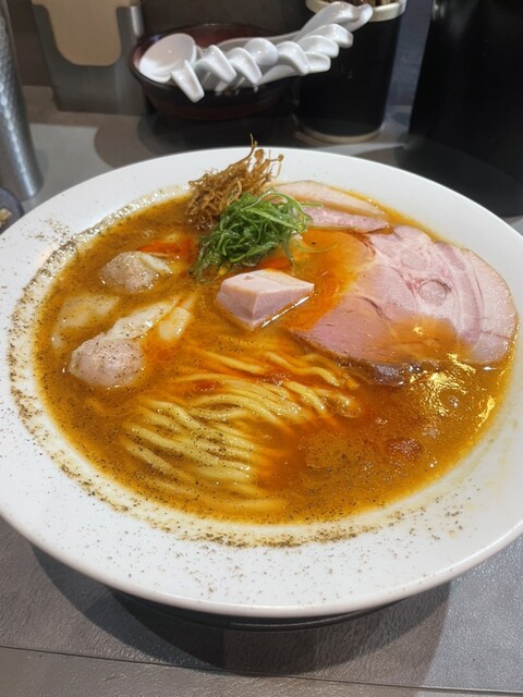 それと肝心のアフビの特上味噌白湯についても話し柳瀬店主も、特上にあるパプリカのエスプーマを混ぜてしまうと味噌感が分からなくなる事は分かってる様子でした。おそらくはあえてそれで提供しているのでしょう!