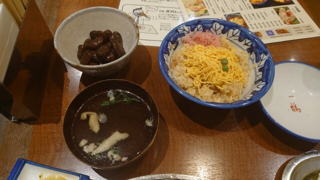 鳥飯は、骨付き鳥の後だと、かなりあっさりめに感じる。澄ましのスープと合わせて、口直しにちょうどよい。漬物と生姜が鶏油の残りをさっぱり目に終わらせる。ちなみに、これだけでも軽食の分量はあります。