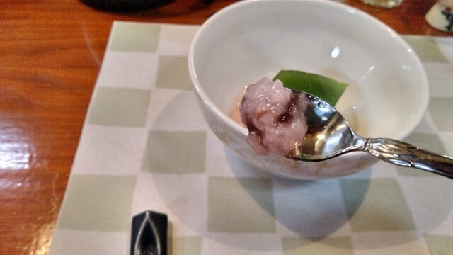 デザートは桜餅で、あんを包むタイプではなく斬新