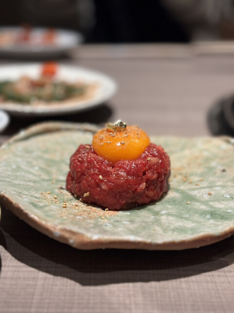 ユッケもミノもめっちゃ新鮮。ユッケはあっさりした味付け