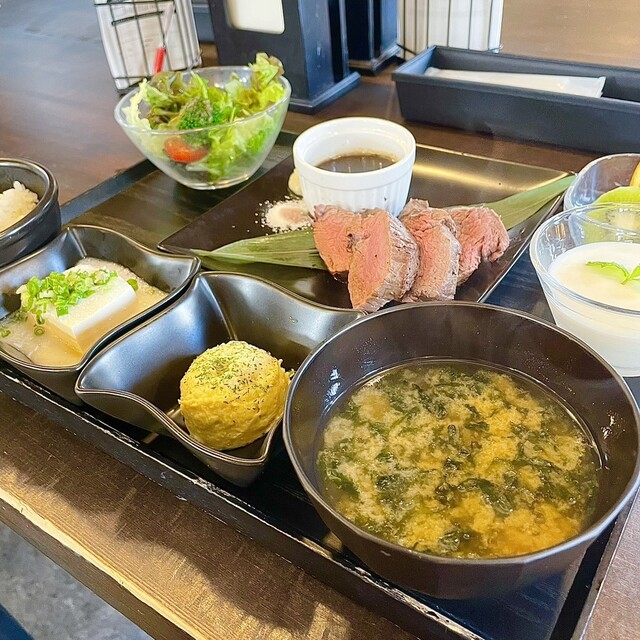 低脂質・高たんぱくな牛ヒレ肉が驚くほどしっとり柔らかく、噛むたびに旨みがじんわり。添えられたピンク岩塩や和風ソースとの相性も抜群です。