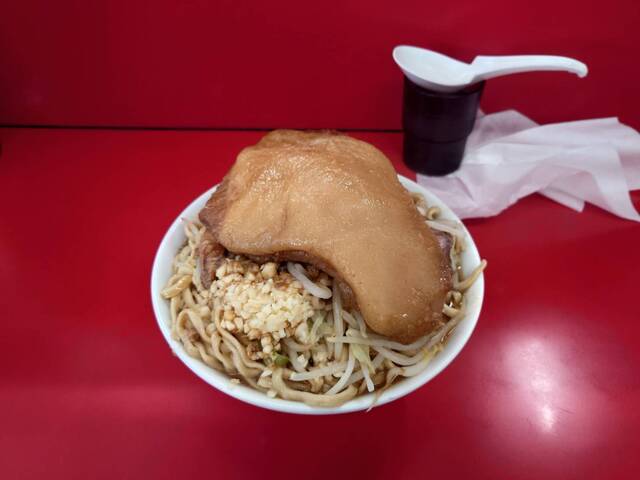 お昼につくばらーめん鬼物語さんを訪問しました。メディアでもたびたび取り上げられている人気店だそうですね。12時前に着いたのですが、駐車場がいっぱいでしばらく待機でした。