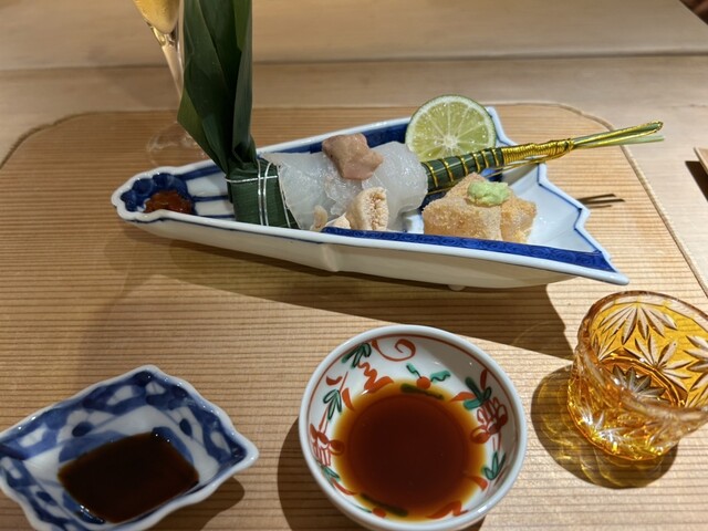 そう頻繁には行かれませんが、ここぞというときに訪問して大満足するお店です。今日は郷里から古い友人とその会社の人が訪ねて来ました。そこで渋谷さんの料理は最高のおもてなしです。今日初めて食べたのは白子をすりおろしてスープにした一品と、牛タンの鰻のタレを絡めた炭火焼き、鱧に鰻でした。提供される料理とそれに合わせたお酒と渋谷さんの料理と人柄に惹かれたお客さんは直ぐに打ち解けられて帰る頃にはすっかり仲良しになっていました。またお邪魔します。