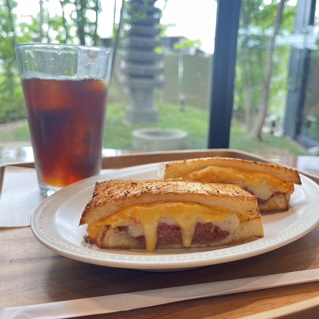 木々を見ながら控えめの照明の元ゆっくりできる最高のカフェでした!コンビーフポテトのホットサンドも、いい具合にジャンキーな味わいで珈琲とのコンビネーションが抜群。駐車場もあり、平日にも関わらず店内も賑やかなのが頷ける良店でした。