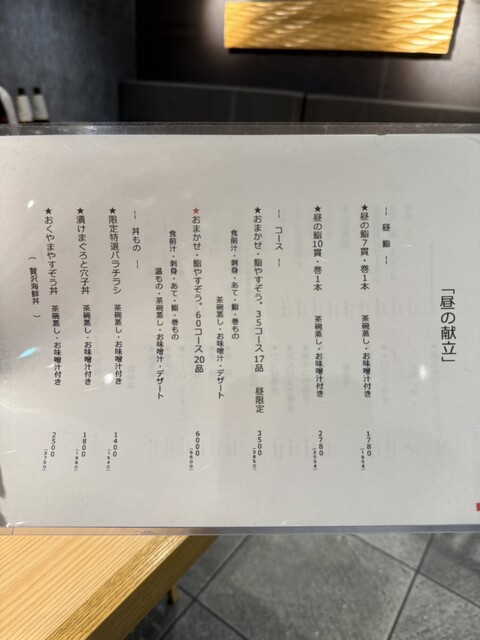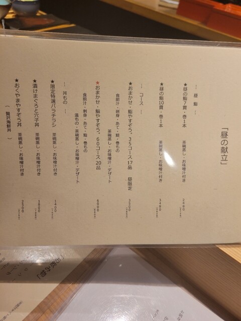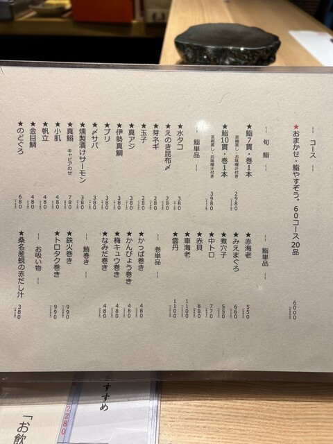 ✔おまかせ20品コース ¥6,000