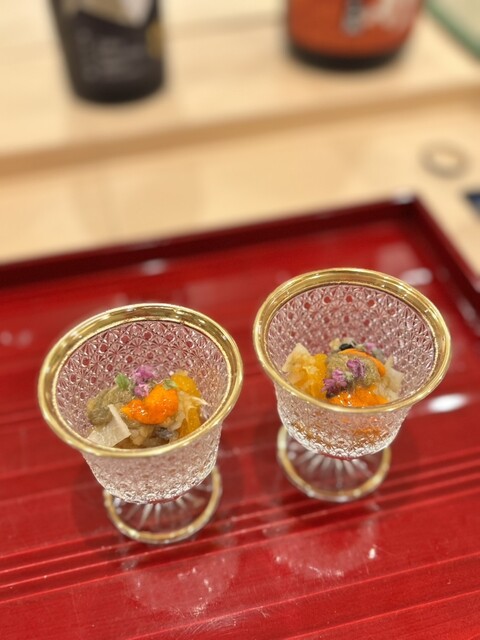 毛蟹の土佐酢ジュレは爽やかで、口の中をリセットして次の皿を誘うバランス感が絶妙でした。