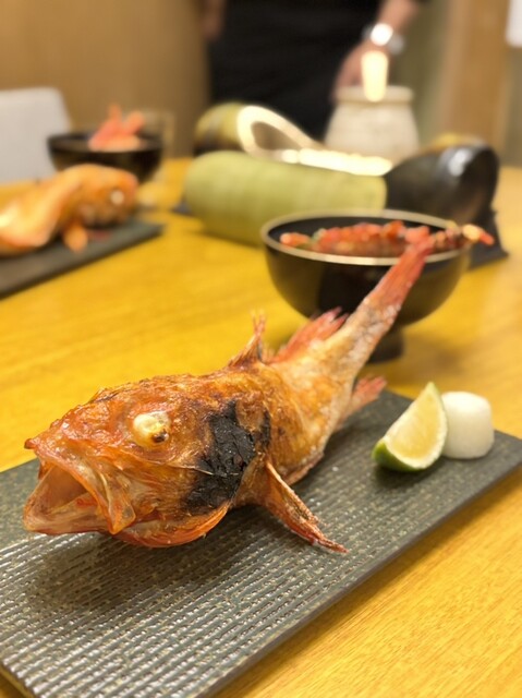 〆に登場するキンキの炉端焼きはまさに圧巻。