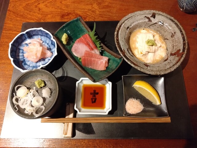 そばを食べに渋谷の円山町わだつみへ。円山町の喧騒の中にあるとは思えない古民家風の店。ランチメニューの「そば御膳」(2,500円)をオーダー。小鉢2種(ゆばとイカの明太子添え)と刺身(マグロとブリ)の他天ぷら、そば、デザート付き。小鉢と刺身は、日によってメニューが変わるみたい。味、質、量共に大満足。再訪決定。