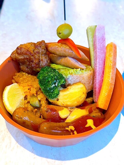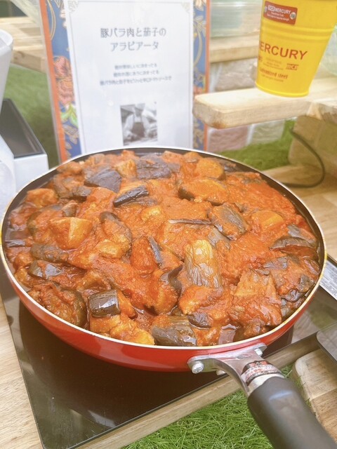 目の前で焼いてくれるソーセージや、150人分の海鮮たっぷりのパエリア!!