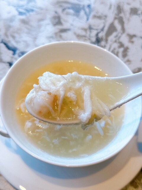エビ、蟹、帆立がふんだんに使われた、海の幸の旨みが凝縮された一杯。冬瓜がとろけるような口当たりを演出し、じんわりと身体に染みわたるような優しい甘さに満たされました。
