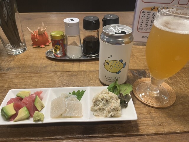 お酒の味を堪能できます。料理は、おでん、串カツ、するめ天、アボガド、チーズ、マグロなど、色々ありました。