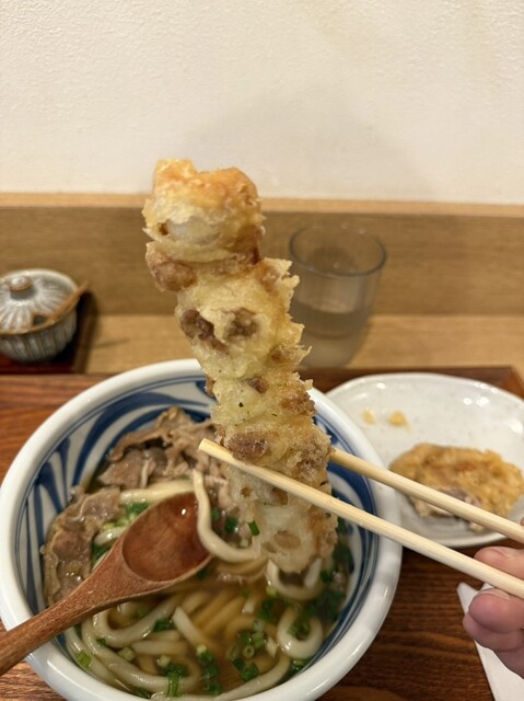 鶏天、ちくわ天、そしてうどん。平日ランチとは思えない満足感で、お腹も心も完全に満たされました!