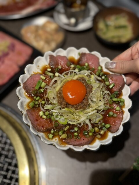 ・「牛タンねぎゆっけ」:タレが甘めで、卵黄と絡んでとろける〜!いくらでも飲めるやつ。(完全にビール持っていかれました笑)