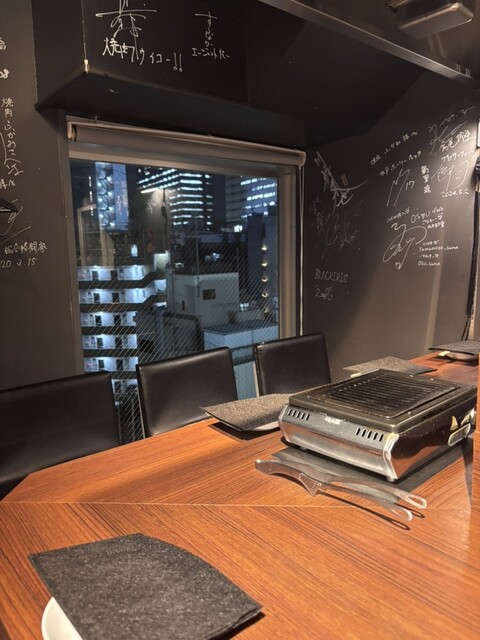 恵比寿駅から広尾方面に2、3分歩いたところにあるビルの8階にあるカウンター焼肉のお店。テーブル席は一席のみです。