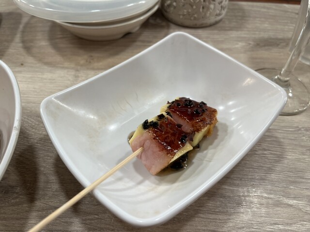 チーズのベーコン巻き 蜂蜜がかかっていてこれも美味しい!彼と1本をチーズ1個ずついただき!!
