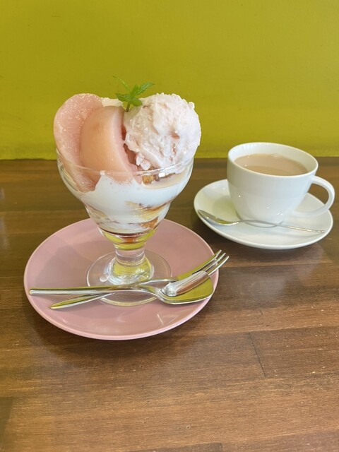 あと違う日ですが、桃のパフェがこの日から開始で、バッチリいただきました(*≧∀≦*)