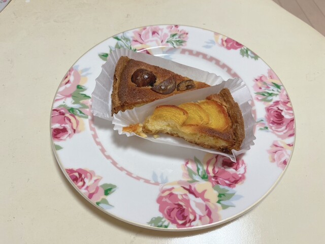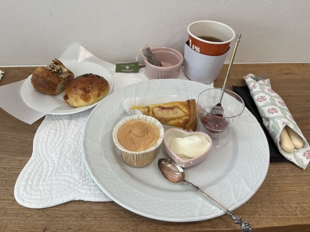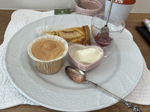 パンと桃のタルト、エンゼルケーキ 紅茶は、お湯を足していただけます♪