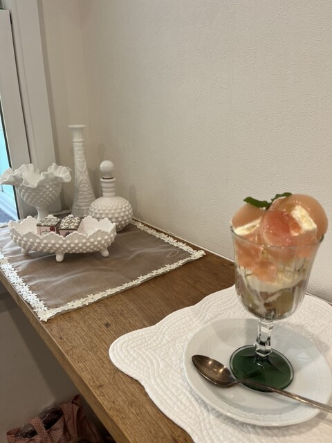 甘い桃のパフェはアイスも全部手作りなので最高です!
