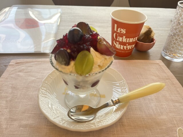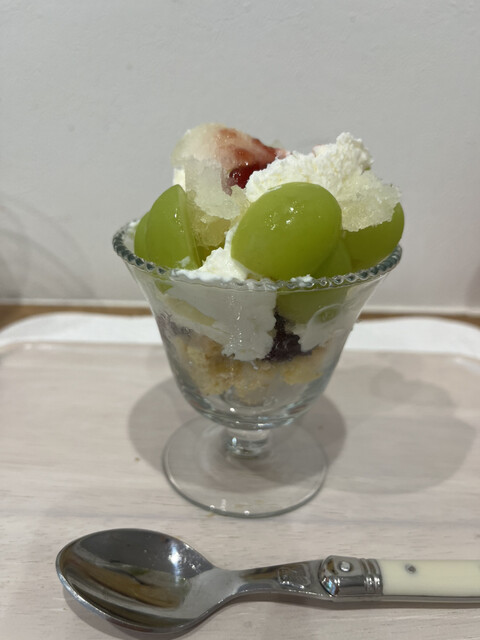 色んな種類のブドウが乗ったパフェ 色んな味を楽しめて美味しかった♪