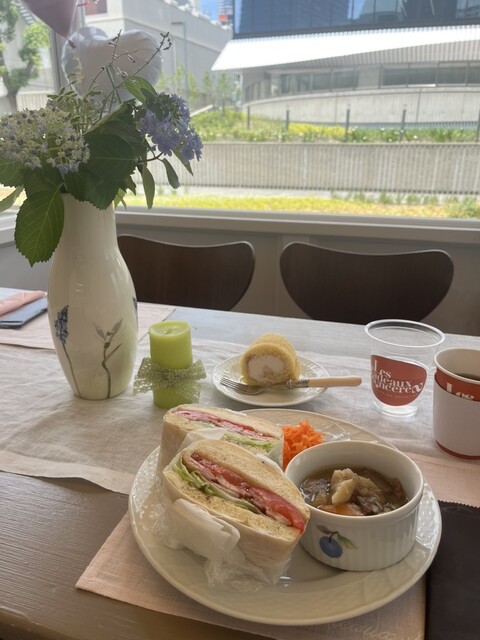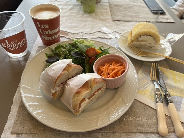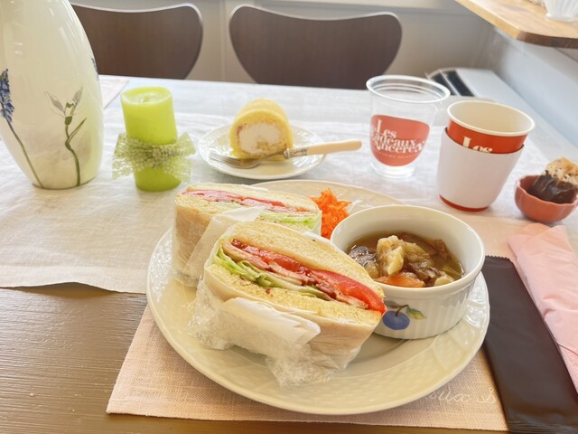 レモンのロールケーキが爽やかでした♪ ベーグルサンドも食べやすく切られていて、とても美味しかった(๑˃̵ᴗ˂̵)
