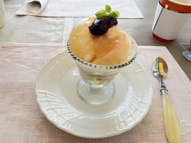 前に食べたクレープランチですが、桃とライムのスープやデザートは、ブドウのパフェで、毎回、中身を同じものを食べさせられない!と先生の思いで中身を変えてくださる気配りがとても嬉しいです(๑˃̵ᴗ˂̵)