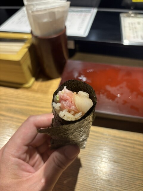 板前さんは気さくで丁寧な接客ですので全体的に満足なんですが、店内の清掃が気になりました。食べる場所の上の電気と天井面にホコリが溜まっているため、お寿司を食べる場所としては非常に気になりました。そのため、−0.5点の3.5点としました。
