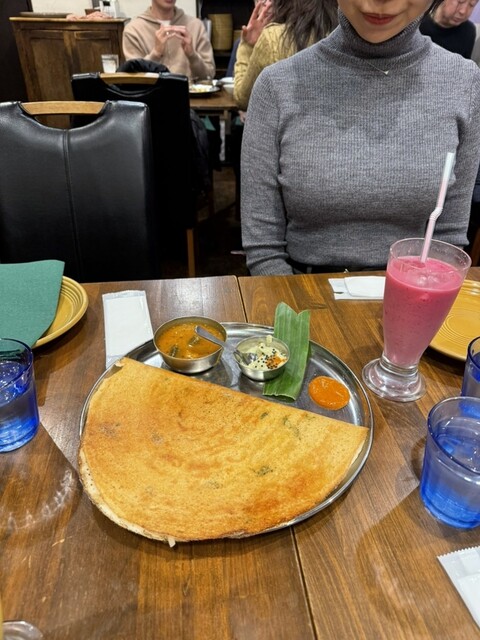 おしゃべりも忘れて美味しすぎてずっと黙々とご飯食べてて最初の1時間記憶ない。先月の東カレでメログラーノがめっちゃ美味しそうでじっくり見てたらそのページにシェフのおすすめのお店❗️っていうちっちゃな吹き出しにあったコチラ。気になって即訪問。シェフおすすめのマトンスッカも美味しすぎたしもう何食べても全部美味しい。オニオンドーサ(パクチーと玉ねぎのクレープ)も美味しすぎて次絶対頼む。男女4人でちぎれるまで食べてお会計3,000円台。もうまた絶対行く、通い詰める。味、価格、予約も食べログからできるし、心の奥底からおすすめできるおみせ。東京大神宮のすぐ近く。外がビニールハウスみたいでわたしっていちごだったっけ?ておもうような外観ですが外だとストーブもつけてくれるしわんこもおっけーだそうです( ^> ̫ < ) ここ最近で一番美味しい。ビビビビビビビときてしまった稲妻グルメすぎる。もうここ最近でいっっちばん美味しすぎただーーいすきなおみせ。ぜひ行って欲しい後悔ない。