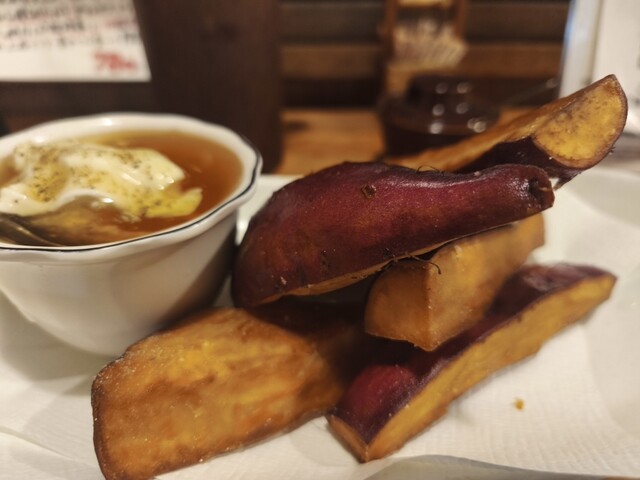 この日はさつまいもスティック素揚げのクリームチーズはちみつは最高にやみつき!初めて食べましたが、ホクホクで芋好きの私にはたまらない!