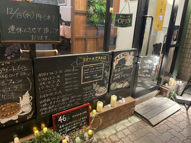 アミューズ、パン、ビストロサラダ、季節のスープ、魚介のポワレ、和牛ヒレのグリエ、デザート、