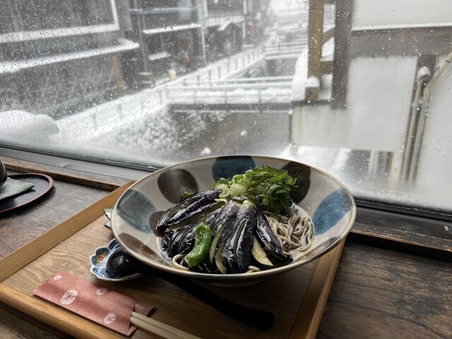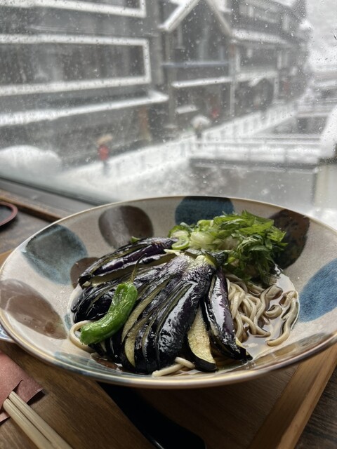 雪降る銀山温泉で、待つ価値のある窓際ランチ。景色も含めて完成する伊豆の華