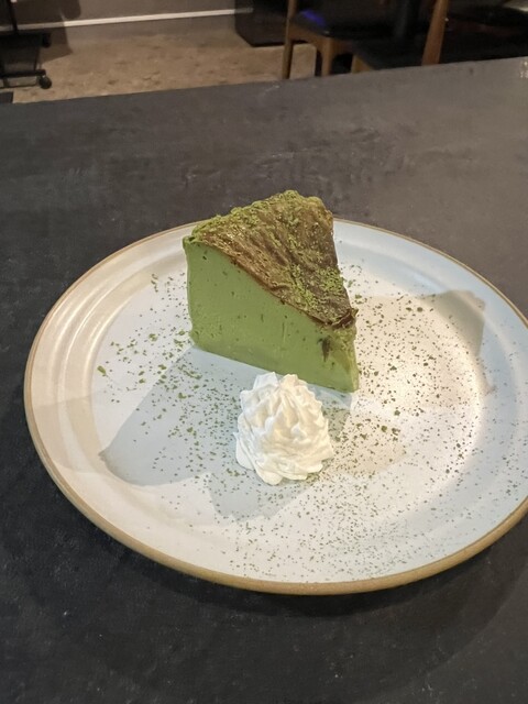 店仕込み濃抹茶のバスクチーズケーキと、自家製レアチーズプリン。