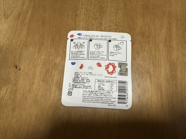 万博のお土産のドリップバック珈琲