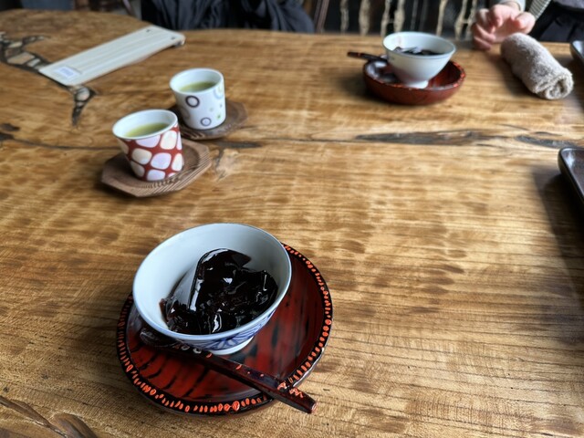 最後に出てきた水あずきが、とてもとてもおいしくて、やわらかめの寒天(?)か何かで固めてあるあずき味のもので、ほのかに甘く優しい口当たりで、初めての食感とお味でした。