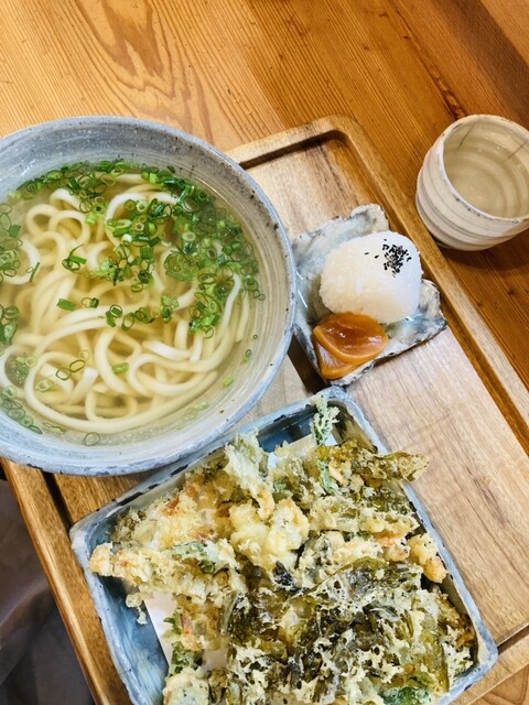 かき揚げは高菜の醤油漬けの漬物を揚げておりこれまた美味しかったです