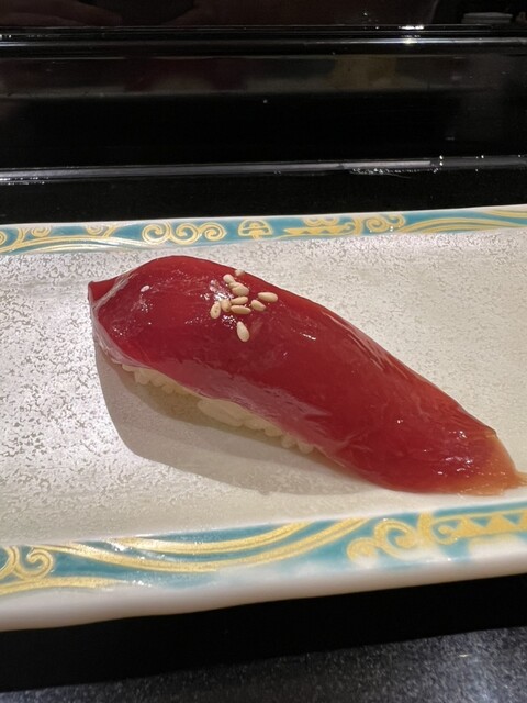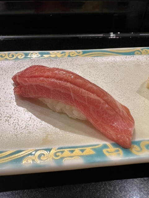 新子、漬けマグロ、ボストン産の脂が乗ったマグロの握り
