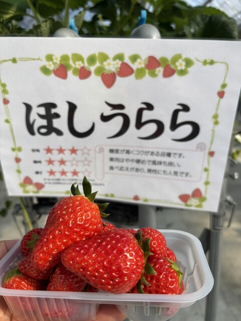 後、イチゴ狩りしなくても朝採りイチゴを販売してますよ。