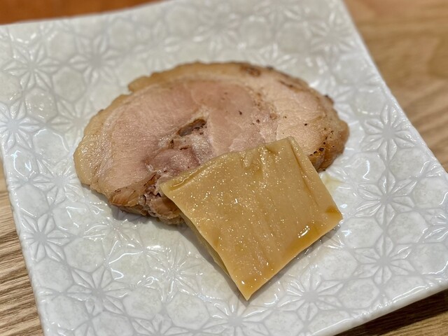 つけダレは、とみ田を彷彿とさせる旨味十分のドロドロ濃厚ダレ。まろやかできめ細かく、恐ろしくうまい。メンマとチャーシューはタレに合わせて控えめだけど、これらも並々ならぬこだわりを感じる。