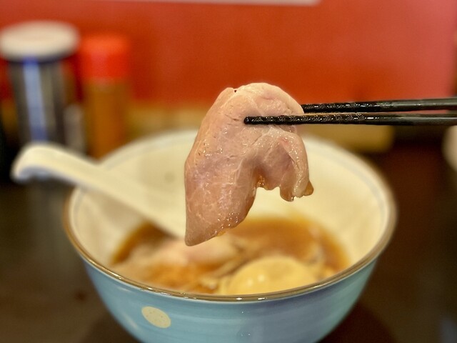特製四つ葉そば1500円。地鶏スープと深みのある醤油のカエシ、鶏油のバランスが素晴らしい。深緑で味わった芳醇スープとよく似ている。薄切りのしっとりもっちりチャーシューをこのスープに漬け込むと、もはやすきしゃぶ感覚。んま。