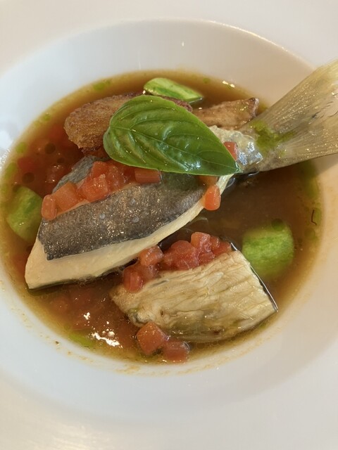 先付け、椀物、ヒラメしゃぶしゃぶ(岩塩プレート)、かき揚げ、茶碗蒸し、焼き物、お寿司、デザート。これで、この金額...