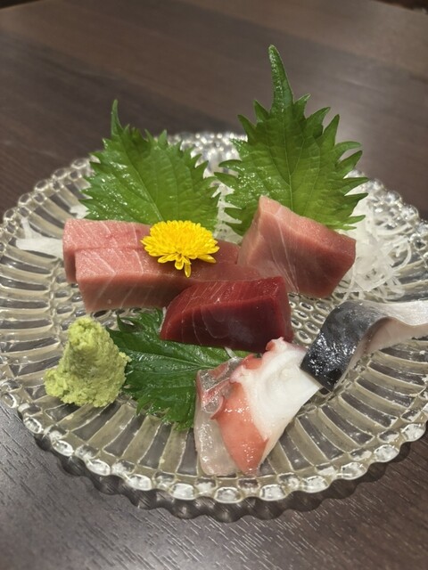 お通し、お刺身、揚げ物など数皿をご提供いただき、おなかもいっぱいで大満足。