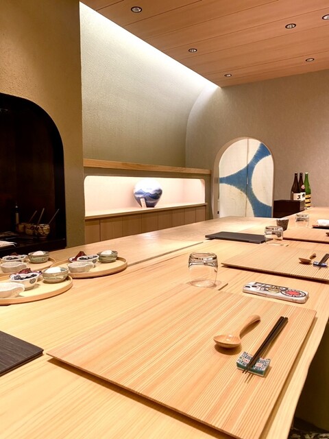 旬の素材をカウター越しに、一品一品丁寧に調理してる姿を見ながら絶品を頂く贅沢な時間。